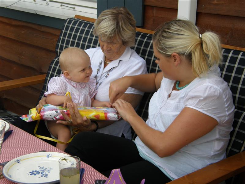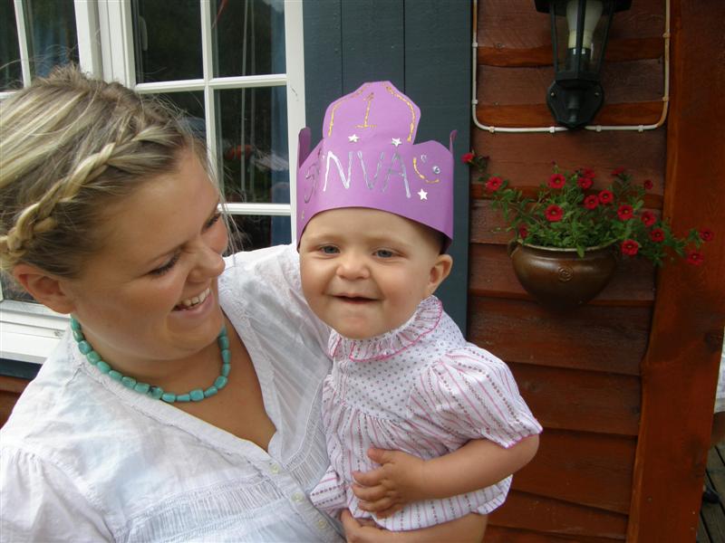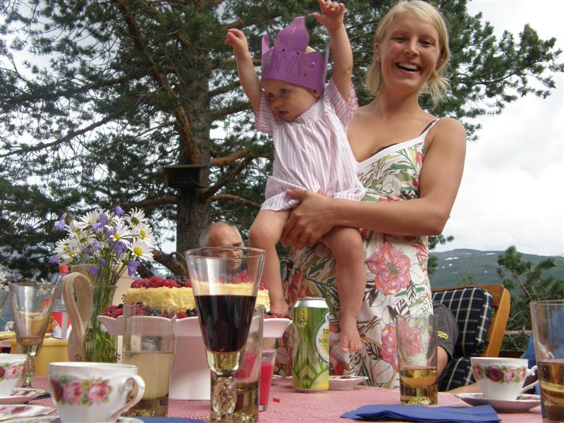 Eg gleda meg sjølvsagt stort til 1-årsdagen min. Den skulle eg feira på Mjølfjell. Me reista opp nokre dagar i forvegen for å forbereda alt. Flotte dagar med soling, bading og god mat. Avslapping i Raundalselva er ikkje å forakta. På sjølve dagen fekk eg besøk av bestemor, bestefar, tante Tina og oldemor. Frå før var mamma, pappa, mormor, morfar, søskenbarn Brage, tante Guro, onkel Bjørn og tante Jorid på plass. Lukas og Kaja var og med på morroa. Det vart laga kjempegod ostekake med mykje bær på til meg. Det vart fort ein favoritt. Ellers vil eg på ny sei tusen takk for alle dei flotte pressangane!