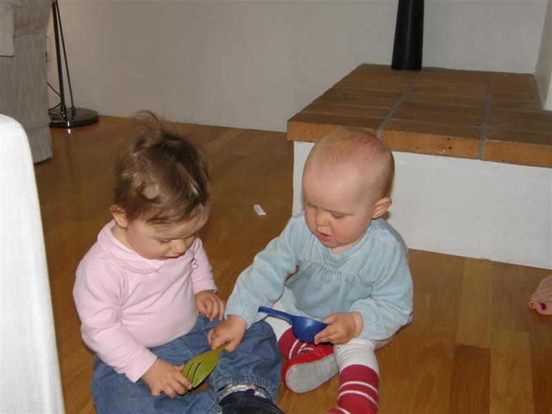 Sunniva og meg i kamp om kjøkkenutstyret.