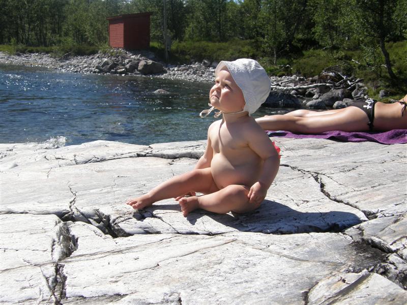 Det er alltid flott å koma til Voss, men i sommar har eg fått augene opp for "Voss beach". Nede på Grandane blir det stårlande når vattenet har fått litt temperatur og sola skin. Då kan eg liggja der og bruna meg. Det skal ein del til å trengja igjennom solfaktor 50 (tenk det er dobbelt så mykje som det pappen brukar!). Eg hadde ein fin dag med besøk frå Volda av Stein-Helge, Trygve og Karen Mathea. Det har og vore andre slektningar innom. Hjå bestemor og bestefar har eg fått besøk av Sunniva, og eg har bada i stampen med Amalie.