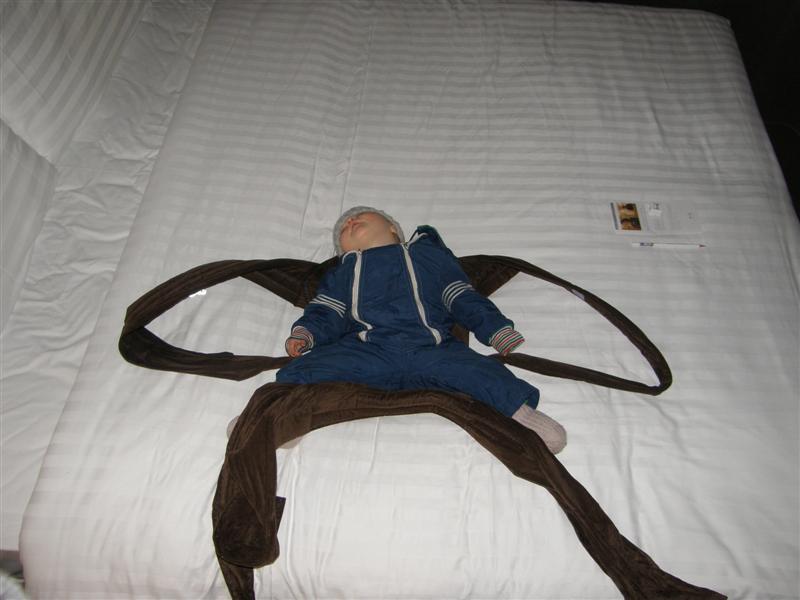 I London sjekka me inn på Jacuzzi Suite, og som dei aller skarpaste av dekan forstår, så var det jacuzzi på rommet. Det var kjekt å symja blant boblene. Hotellet hadde og basseng som nesten holdt Hagahaugentemperatur, og der var me kvar dag. Ellers gjekk dagane med på å sjå seg om rundt i London, samt shopping! Eg fekk mange misunnelege blikk frå folk som sleit med vogn, medan eg hang på ryggen. For anledningen i ny sele som var sydd av mammo før turen. Ein Rolls Royce-sele som virkelig er behagelig.